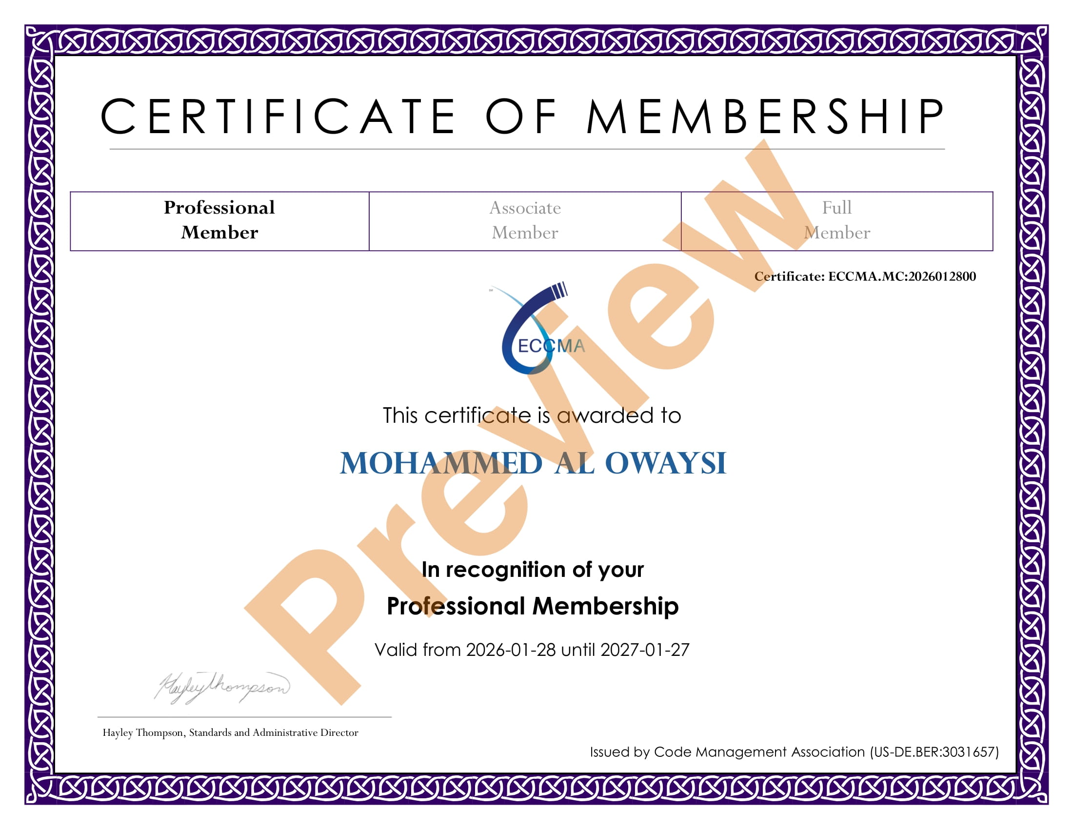 Membership Number: ECCMA.MC:2026012800